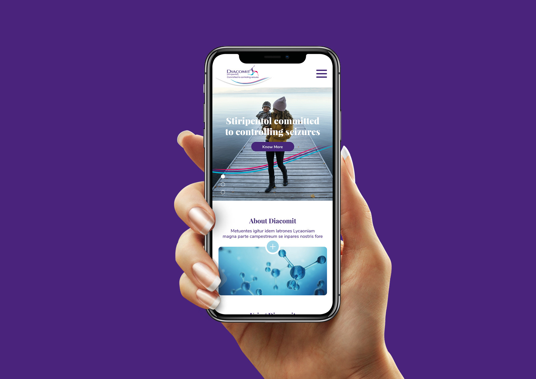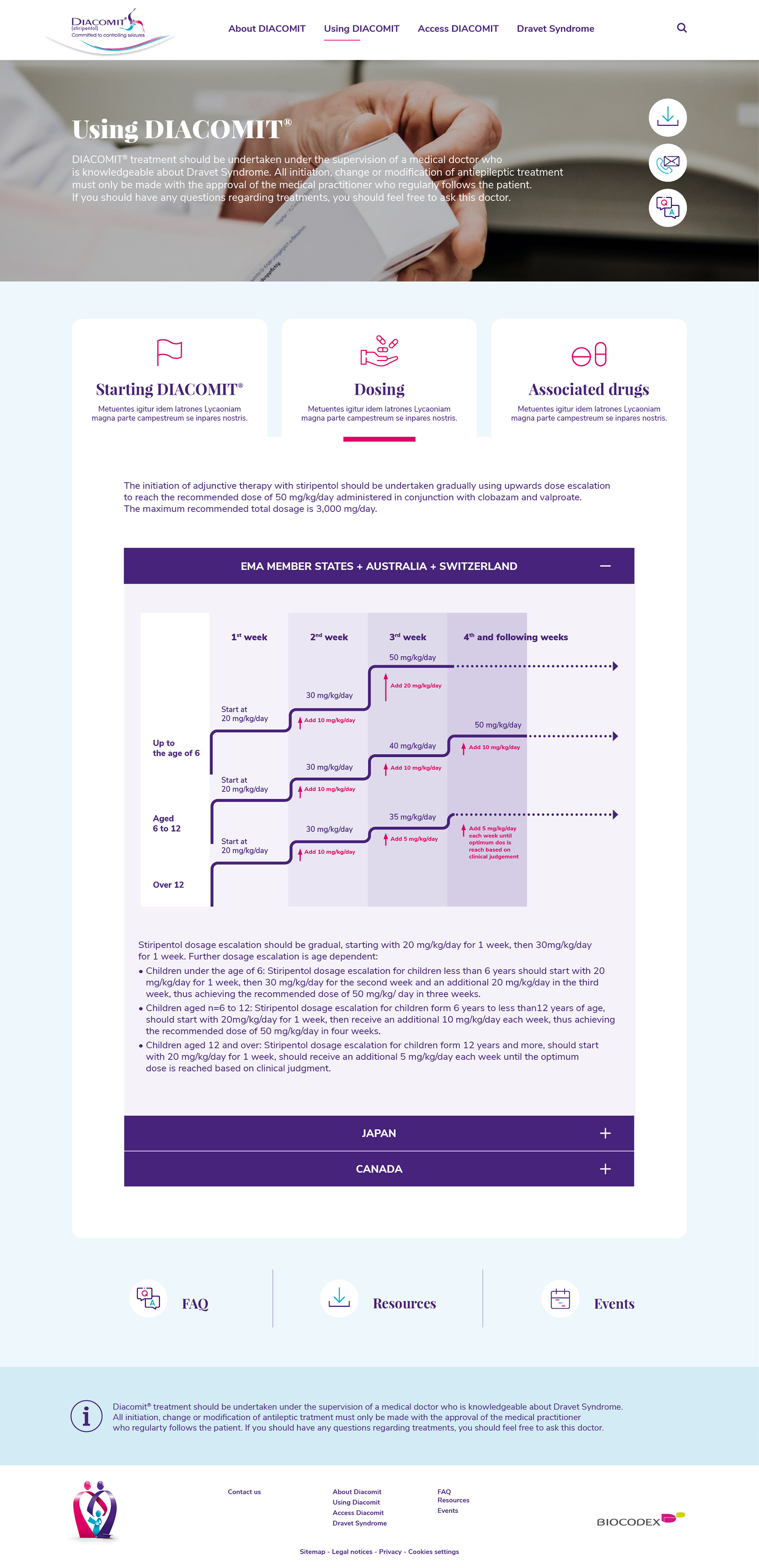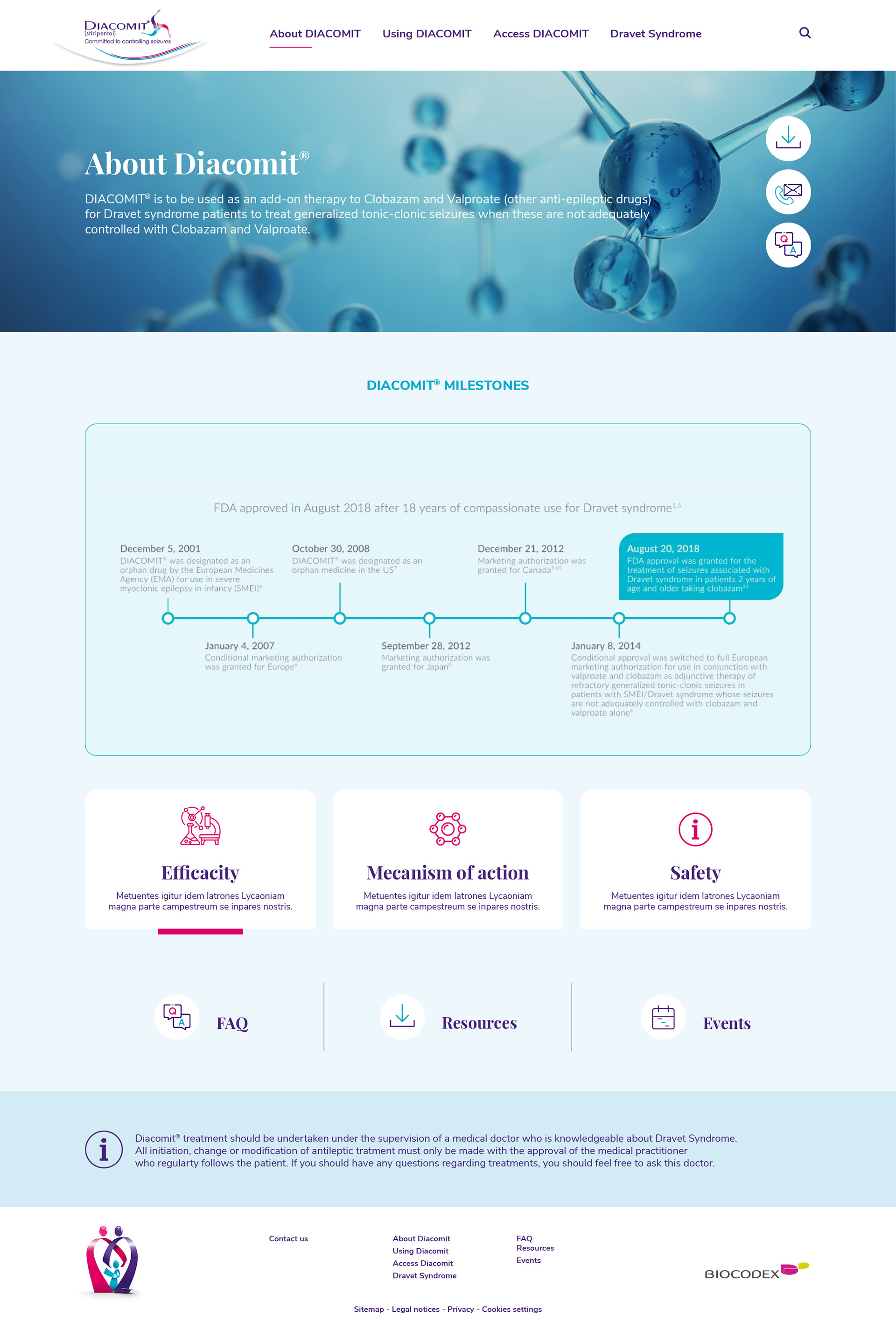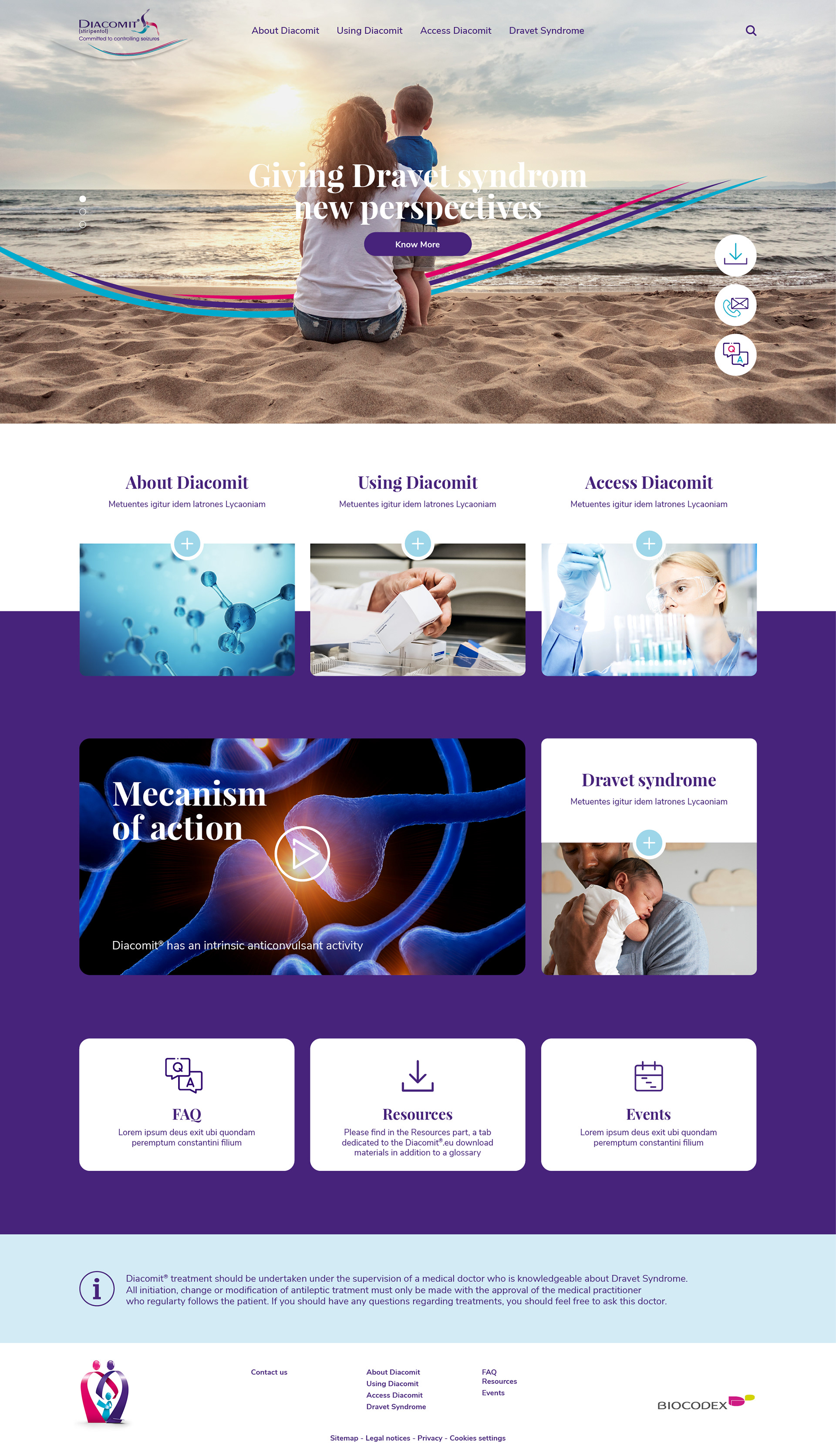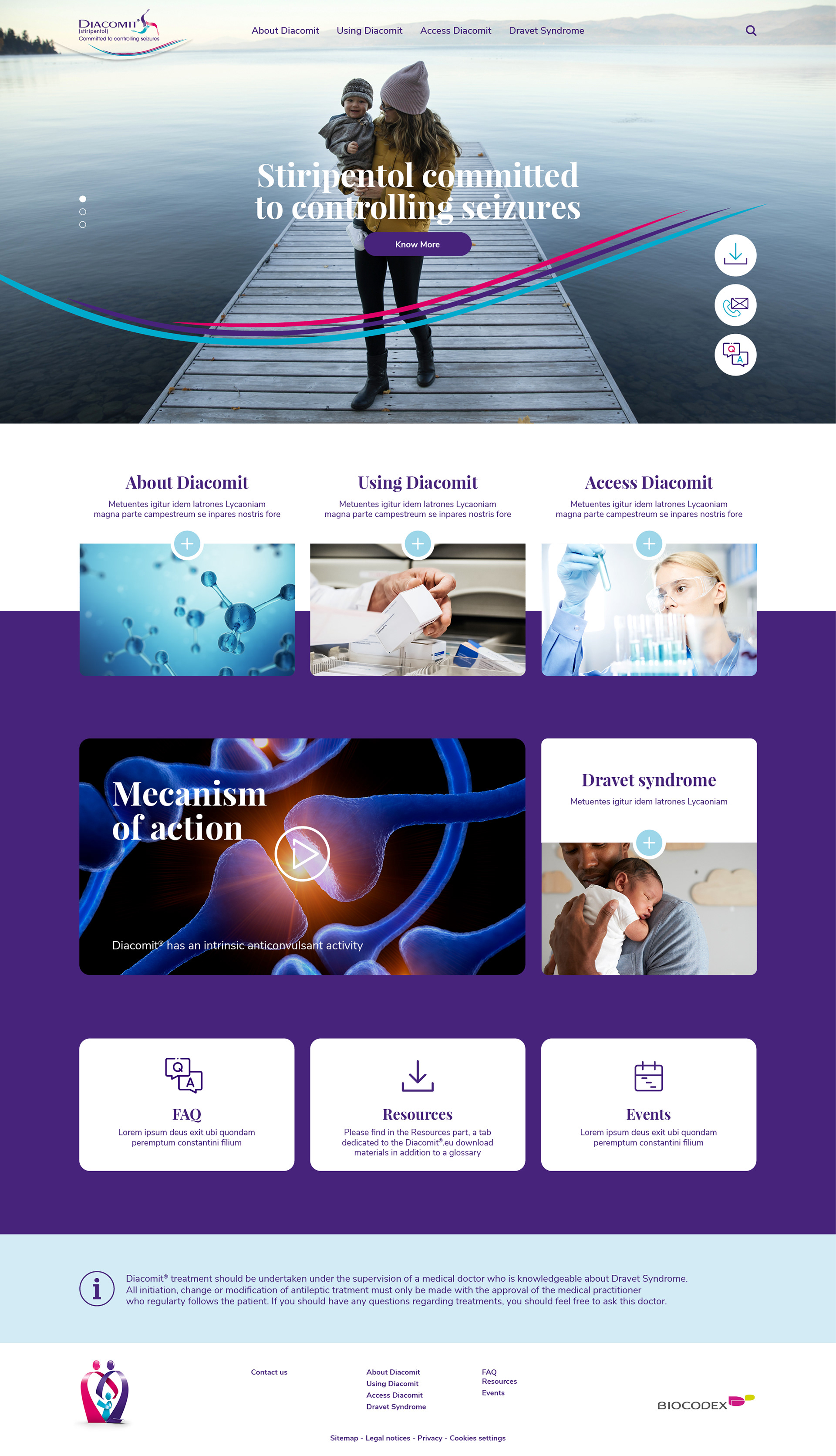 Création du site internet et déclinaisons des versions mobiles pour Diacomit, médicament dédié aux luttes contre les crises d'Epilepsies.