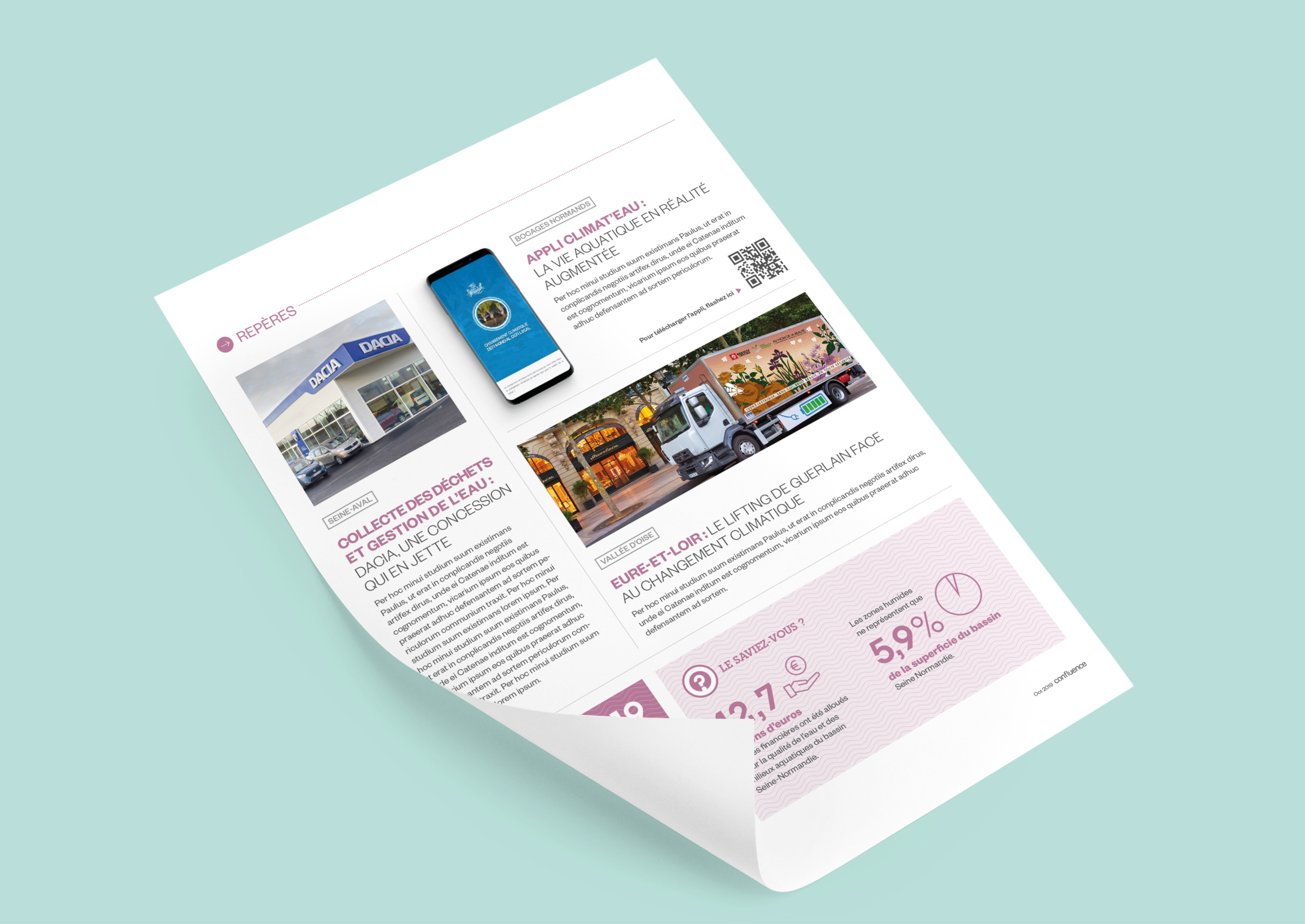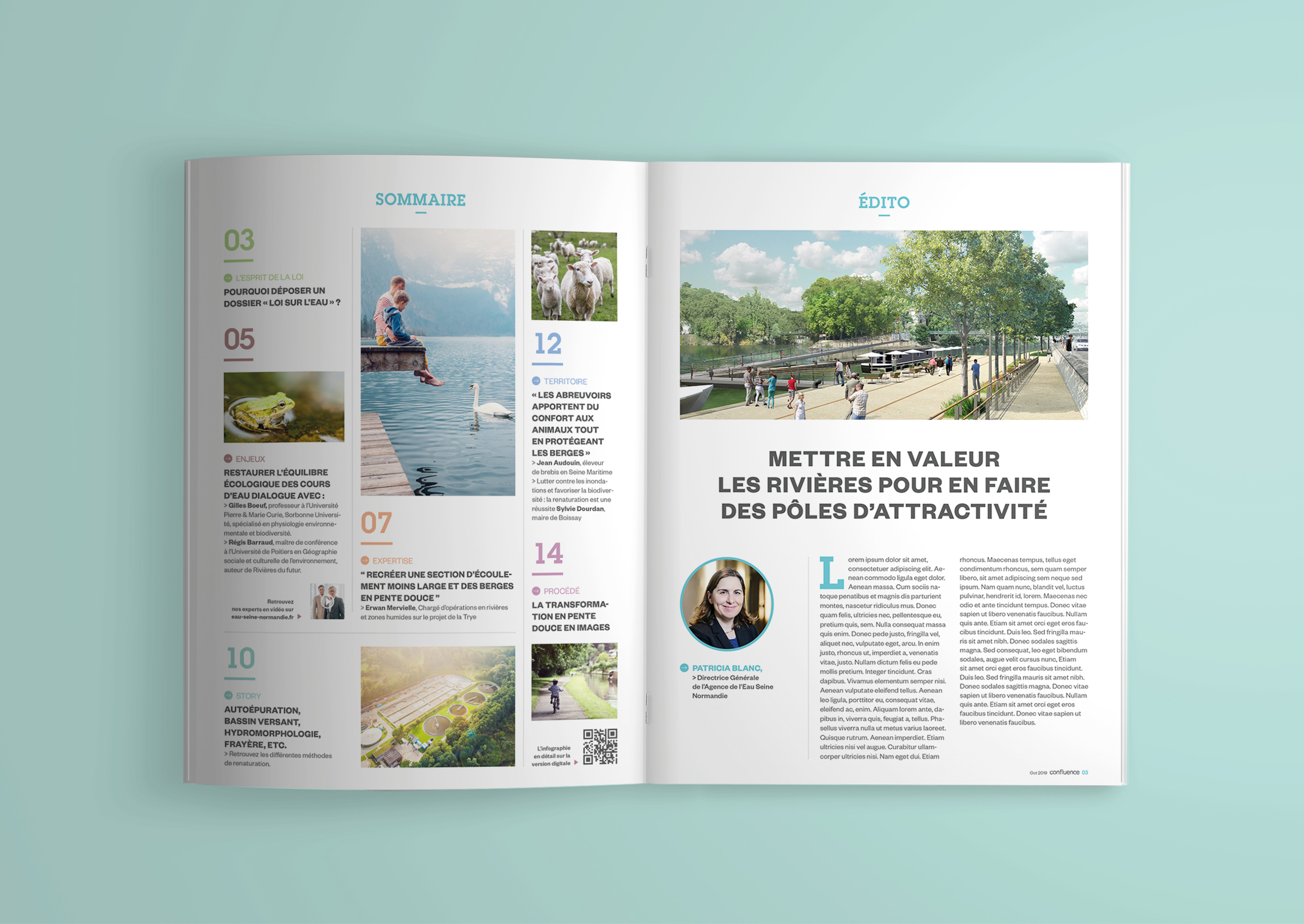 Proposition de refonte éditoriale du magazine "Confluence" à l’occasion d’un appel d'offre de l’agence Eau Seine Normandie.