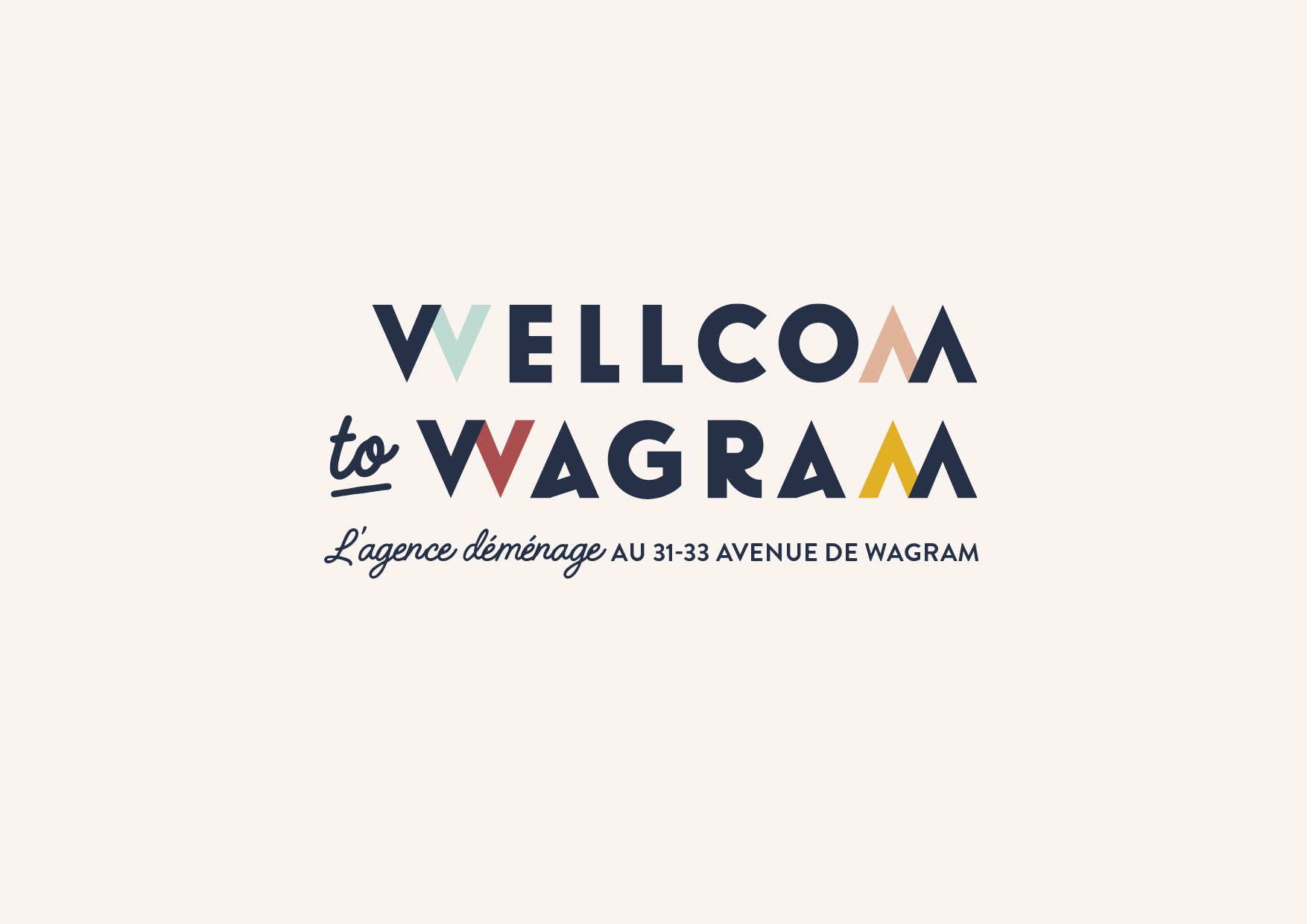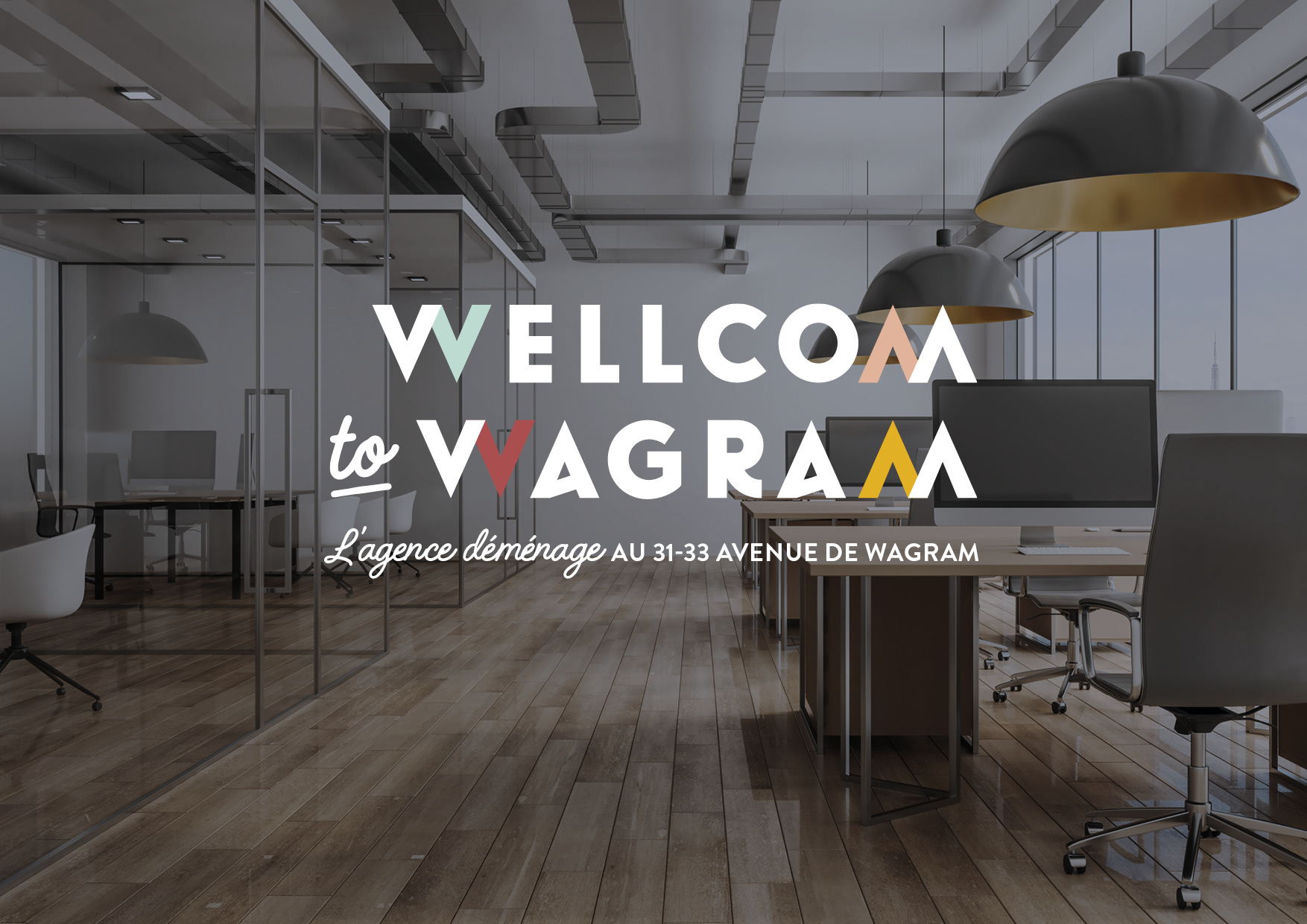 Création de l'identité pour Wellcom to Wagram dans le cadre du déménagement de l'agence Wellcom et des portes ouvertes dédiées aux clients et aux journalistes/influenceurs.
